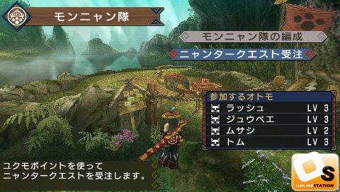 เป็น ระบบใหม่ล่าสุดเกี่ยวกับน้องเหมียวในภาคนี้ เราสามารถจัดน้องเหมียว 4 ตัวเป็นทีม เรียกว่า "Team Monnyan" ไปลุยเควสต์เฉพาะสำหรับน้องเหมียว ที่เรียกว่า "Nyanta Quest"ได้ ด้วย  โดยที่น้องเมียว airu ของเราจะได้ค่าประสบการณ์และไอเทมต่างๆติดไม้ติดมือกลับมาด้วยล่ะ  โดยการที่จะรับเควสต์ของเจ้าเหมียวนั้น จะต้องใช้ Yakumo point ด้วย