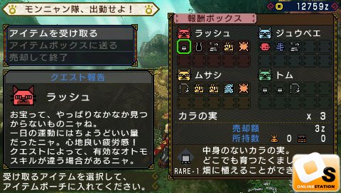 ใน  Monster Hunter Portable 3rd  เราสามารถพาน้องเหมียวน้อยไปฝึกฝนได้ในหลายๆรูปแบบ และสามารถพัฒนาน้องเหมียวได้หลายรูปแบบมากๆ  ยิ่งเราฝึกฝนให้มากเท่าไหร่ เราก็จะได้ point ตัวนึงที่เรียกว่า Yakumo point ไว้สำหรับปลด lock การฝึกที่ยากขึ้นไปอีก  เมื่อน้องแมวของเราเก่ง เราก็สามารถที่จะผ่านเควสต์ได้อย่างสบายๆเลย